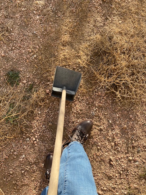 My husband has been gone for over a week and he is the one who usually does doody duty…We had five dogs (instead of just our two) at our home recently when we had family visiting and that is a lot of poop! Therefore, my decision to actually do the doody duty was based on the large collection of doody in the dog yard and to avoid the horrified expression on my husband’s face when he gets home from his trip. Yes, I can do ranch chores, I just do them the Poshranch way.