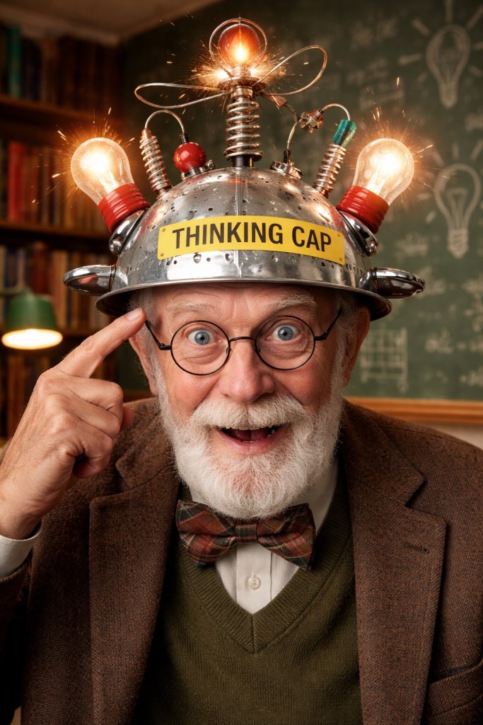 As I typed the words ‘thinking cap’ I pondered where the term originated. After a quick bit of research there are some differing opinions, but the most common was the following: It started in the early 1800’s when wearing hats was much more common. Thinking Cap became a metaphorical term for a hat for someone doing some deep concentrating. It was originally called a considering cap. Hats come in many different styles for many different purposes and a thinking cap was just another ‘cap’ used for periods of concentration. And there you have it, your word etymology of the day. Not to be confused with entomology which is the study of insects, eww.